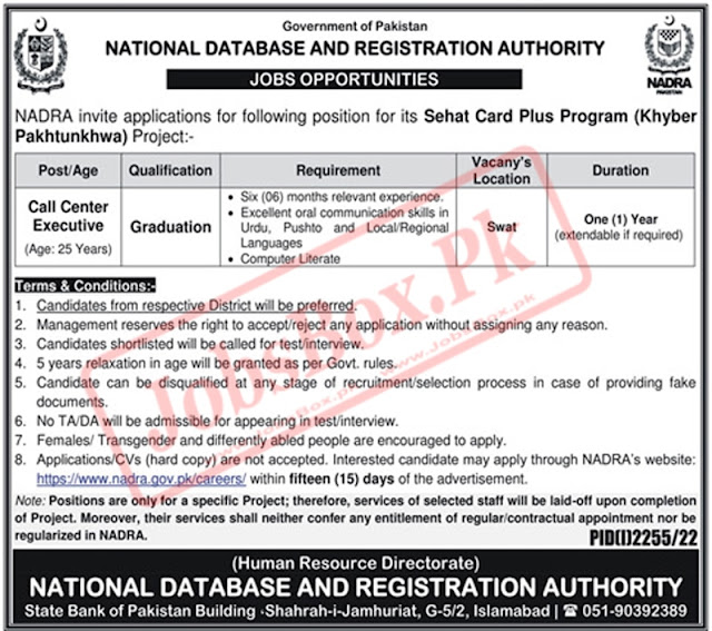| Address | NADRA-National Database and Regulation Authority Latest Jobs 2022 |